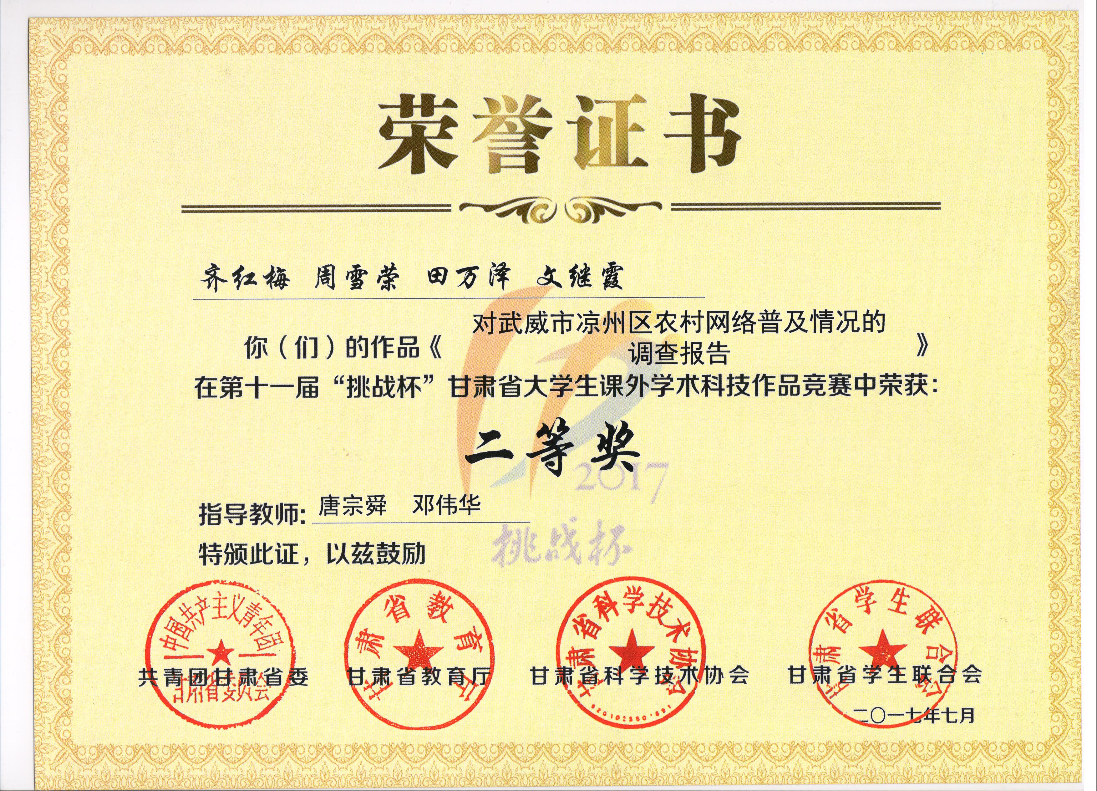 我系學(xué)子在甘肅省第十一屆“挑戰(zhàn)杯”課外學(xué)術(shù)作品競賽喜獲佳績