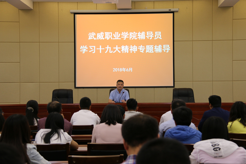 為學(xué)習(xí)貫徹十九大精神和習(xí)近平新時(shí)代中國(guó)特色社會(huì)主義思想,我院于6月4日下午在行樹樓學(xué)術(shù)報(bào)告廳組織召開學(xué)習(xí)十九大精神專題輔導(dǎo)會(huì)。各系輔導(dǎo)員、班主任、團(tuán)干部以及學(xué)工干部50余人參加輔導(dǎo)會(huì)。學(xué)生工作處處長(zhǎng)王守云做了“不忘初心、牢記使命,做新時(shí)代的‘四有’輔導(dǎo)員”專題輔導(dǎo)。