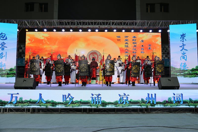 9月9日,來自全市三縣一區(qū)、市直機關(guān)、市老干局、市工商聯(lián)、市直教育系統(tǒng)選拔出的23個吟誦涼州詞節(jié)目齊聚武威市體育館,上演了“車馬相交錯,歌吹日縱橫”的涼州遺韻。學(xué)院推送的節(jié)目《金戈鐵馬入夢涼州》在決賽中成績位列第四,榮獲一等獎,并被市文廣局選送參加第二屆涼州文化論壇暨中國?河西走廊第八屆有機葡萄美酒節(jié)文藝展演。