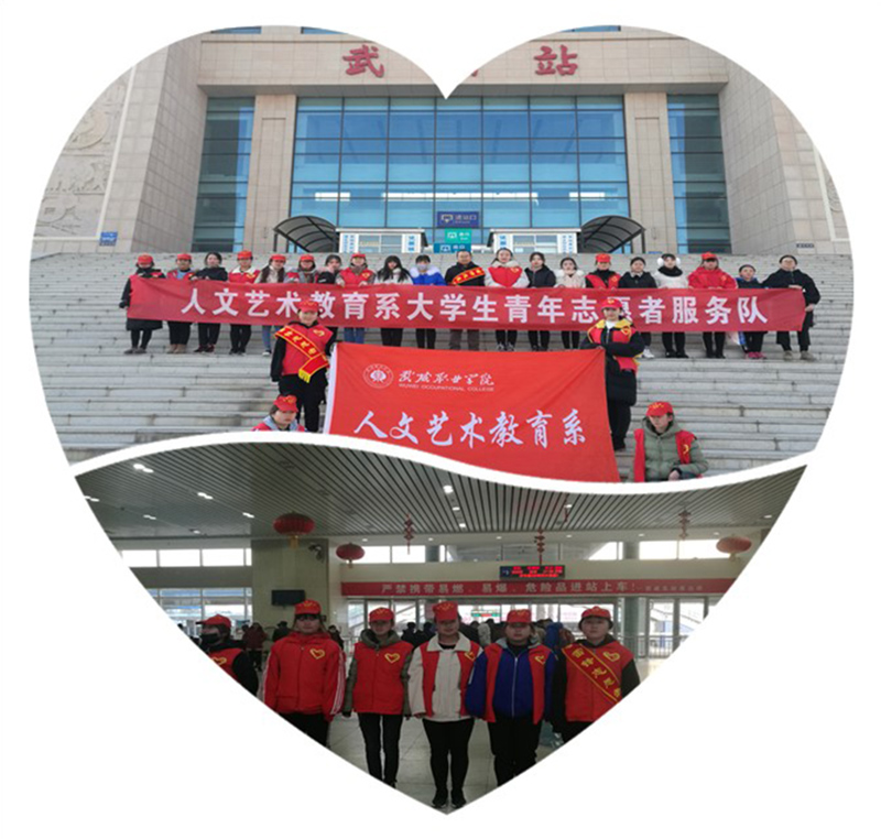 人文藝術(shù)教育系志愿者服務(wù)隊(duì)由系輔導(dǎo)員唐鑫基老師帶隊(duì)。清晨,志愿者身著紅色小馬褂來到火車站和長途汽車站,開展以"青春志愿行,共筑創(chuàng)城夢"為主題的志愿服務(wù)。組織幫助旅客搬行李、引導(dǎo)路線,為過往旅客引導(dǎo)咨詢、秩序維護(hù)、便民利民等方面開展志愿服務(wù)工作。