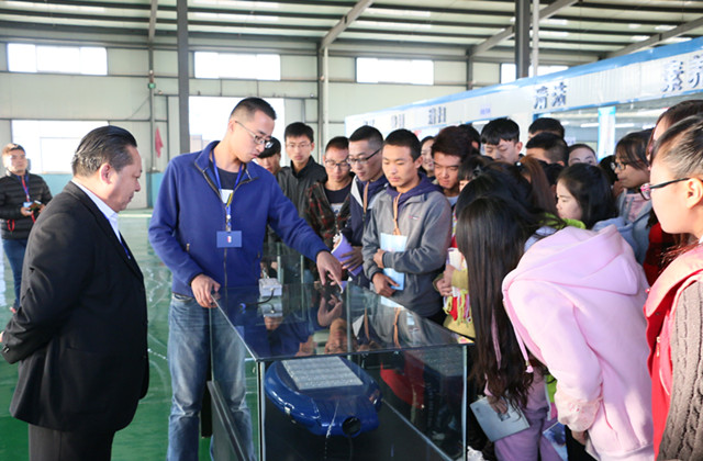 在榮寶照明,同學(xué)們了解了LED照明、LED路燈等太陽能能源開發(fā)及節(jié)能照明系列產(chǎn)品,參觀了LED封裝車間、路燈制造車間、涂裝車間、總裝車間;在航天萬源,工作人員帶領(lǐng)同學(xué)們參觀了風(fēng)力發(fā)電機(jī)的輪轂生產(chǎn)線、主軸生產(chǎn)線、電機(jī)生產(chǎn)線并介紹了風(fēng)力發(fā)電機(jī)的原理,風(fēng)力發(fā)電機(jī)各部件生產(chǎn)流程;在甘肅建投,同學(xué)們參觀了風(fēng)電設(shè)備、光伏產(chǎn)品、治沙設(shè)備的生產(chǎn)制造車間及相關(guān)工藝流程。