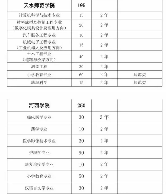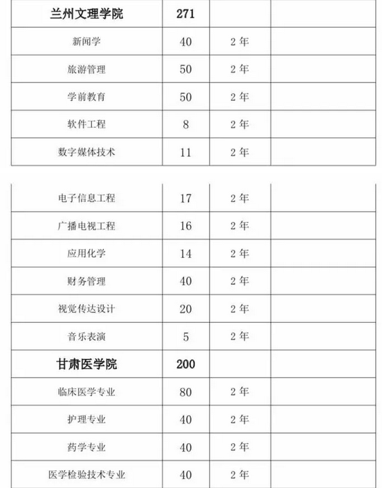 甘肅省2019年普通高?!皩I尽闭猩媱潊R總表