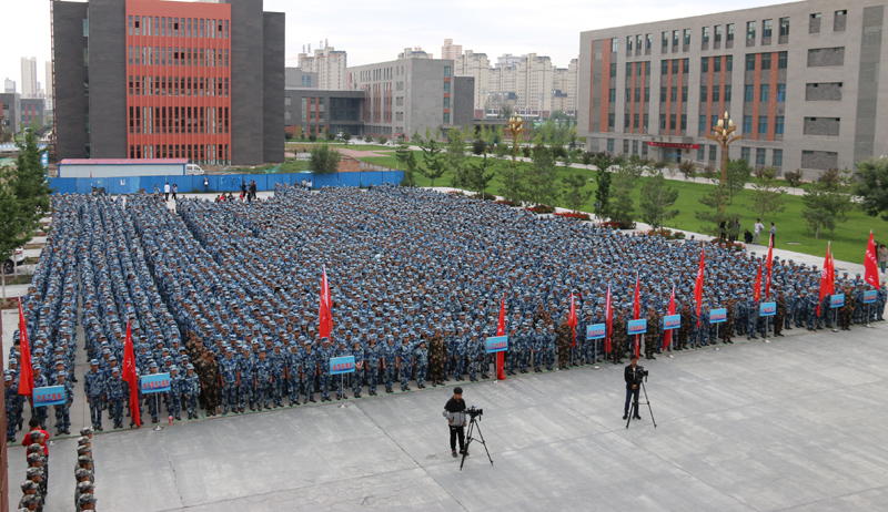 大會現(xiàn)場,田迎春向承訓(xùn)單位授予軍訓(xùn)團(tuán)旗。大會在雄壯的《中國人民解放軍軍歌》聲中拉開了軍訓(xùn)序幕。