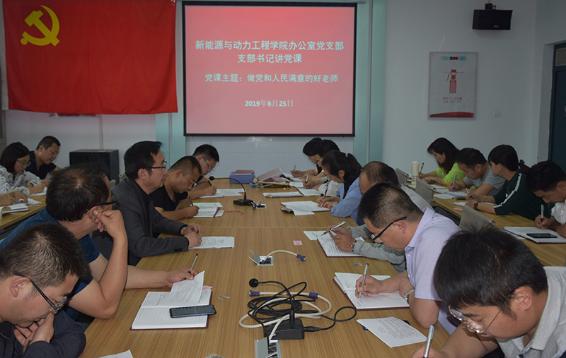 6月25日下午,新能源與動(dòng)力工程學(xué)院辦公室黨支部書記任陶以《大學(xué)的定力與初心——做黨和人民滿意的好老師》為題講黨課,支部全體黨員聆聽了此次黨課。