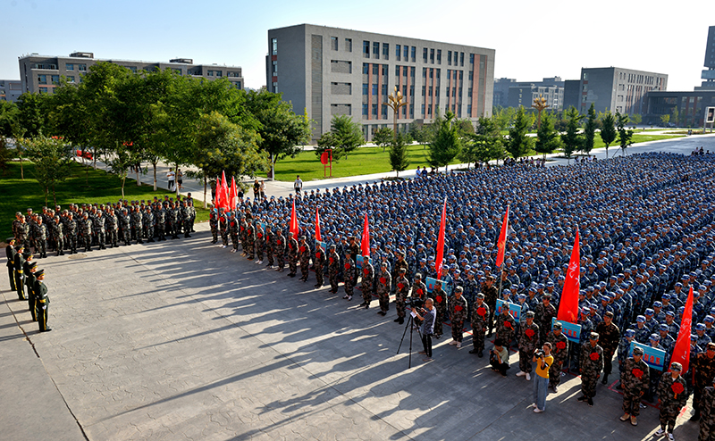 9月4日上午,學(xué)院2019級新生軍訓(xùn)動(dòng)員大會(huì)暨大學(xué)生應(yīng)征入伍歡送儀式在大學(xué)生活動(dòng)中心廣場舉行。學(xué)院黨委書記、院長趙明出席并向軍訓(xùn)團(tuán)授旗,黨委副書記翟存祥寄語全體新生,院領(lǐng)導(dǎo)張富國、王永緒、田迎春、何毅、張開禮及31666部隊(duì)營長李明出席,承訓(xùn)單位55名教官,學(xué)院各系黨總支書記、輔導(dǎo)員、新生班班主任,2019年參軍入伍的28名大學(xué)生、2019級4157名學(xué)生參加了大會(huì)。大會(huì)由副院長王守云主持。