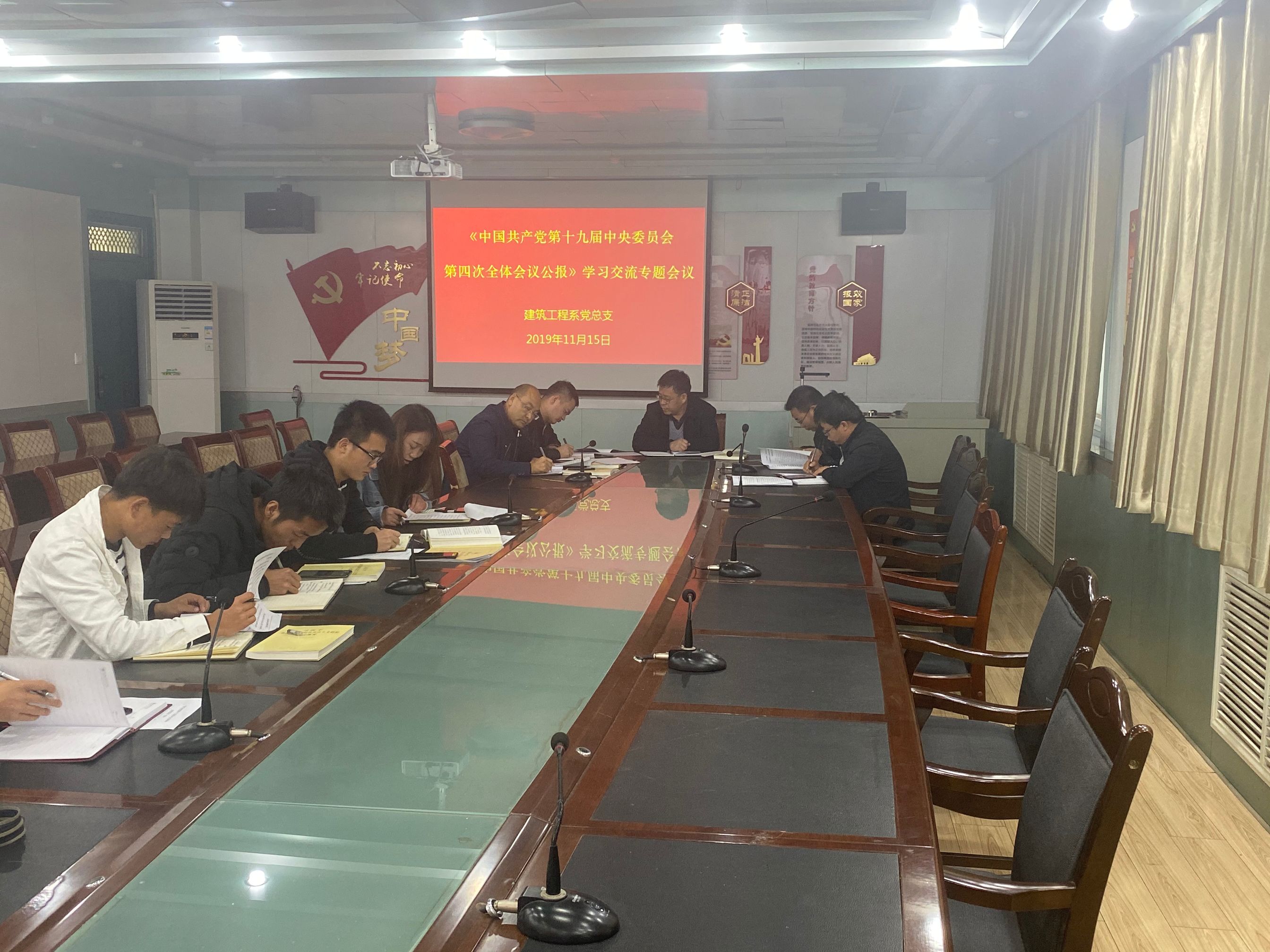 11月15日下午,建筑工程系黨總支在博學樓二樓黨員活動室召開中國共產黨第十九屆中央委員會第四次全體會議精神學習心得交流會議,會議由黨總支書記孫潤元同志主持,建筑工程系全體教師參加會議。