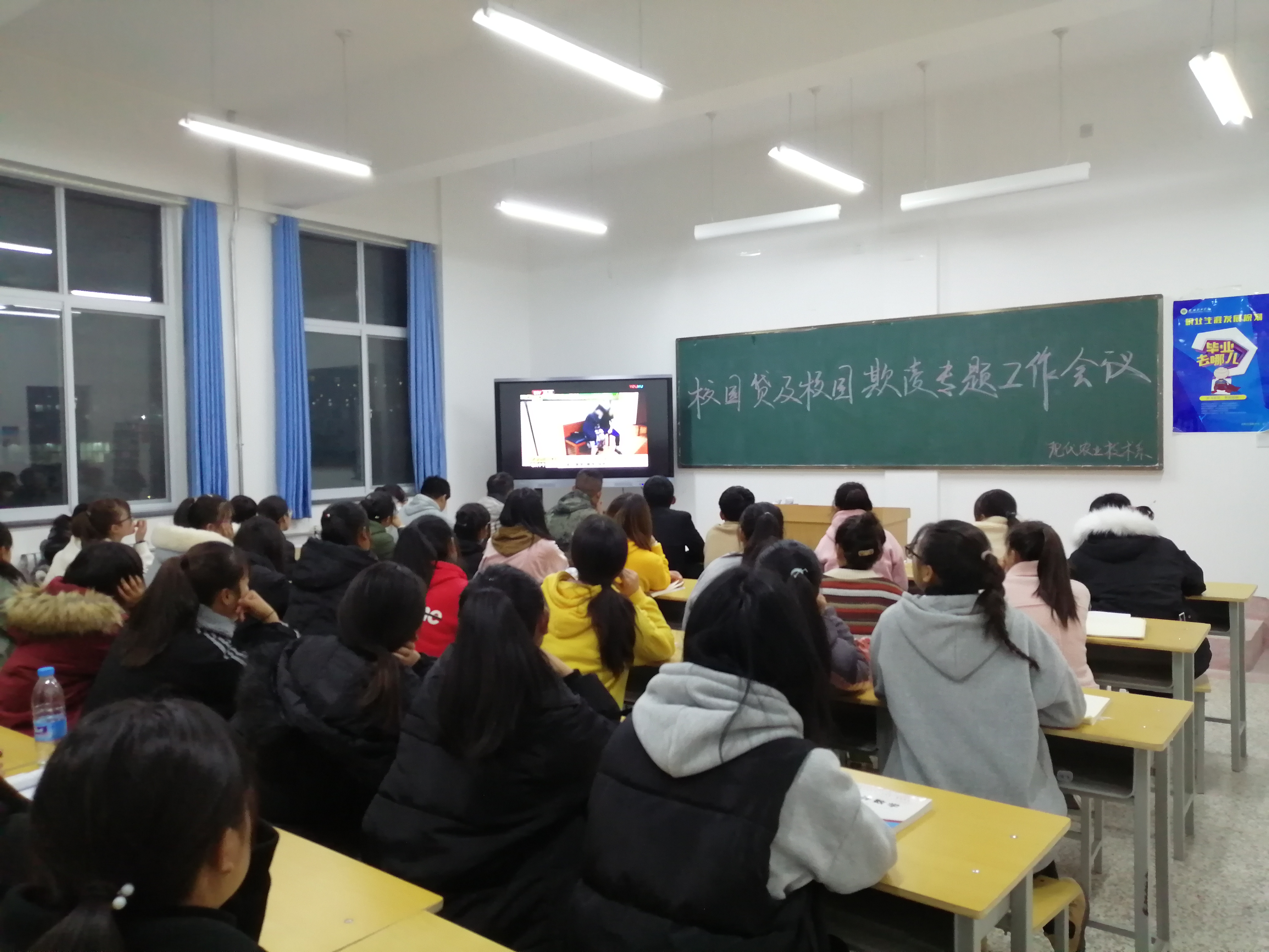 會議重點學(xué)習(xí)關(guān)于校園貸典型案例、視頻資料,普及法律知識,增強學(xué)生金融、網(wǎng)絡(luò)安全防范意識;介紹有關(guān)校園欺凌、校園暴力的常識和造成的危害,增強學(xué)生的法制觀念。