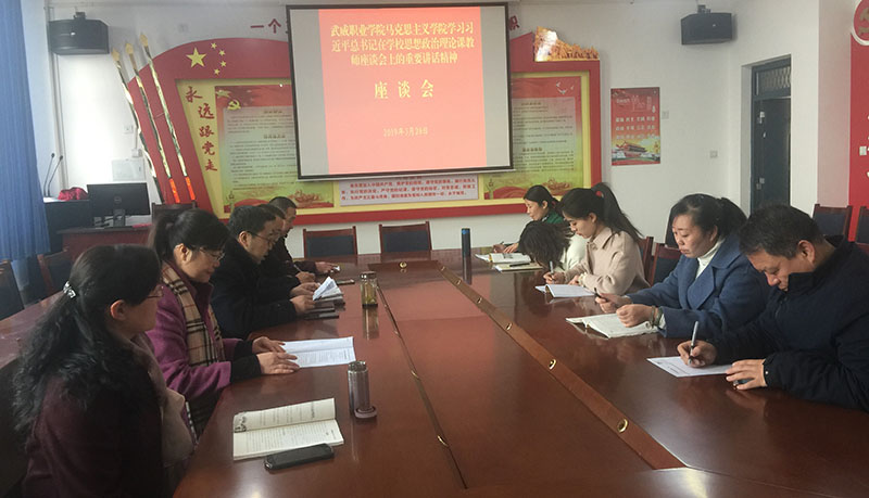 為了深入學(xué)習(xí)貫徹習(xí)近平總書記在在學(xué)校思想政治理論課教師座談會(huì)上的講話精神,3月20日下午,武威職業(yè)學(xué)院馬克思主義學(xué)院召開思政教師座談會(huì),專題學(xué)習(xí)習(xí)近平總書記在學(xué)校思想政治理論課教師座談會(huì)上的重要講話精神,深入交流學(xué)習(xí)總書記講話精神的心得體會(huì)。會(huì)議由馬克思主義學(xué)院副院長(zhǎng)胡靜峰主持。