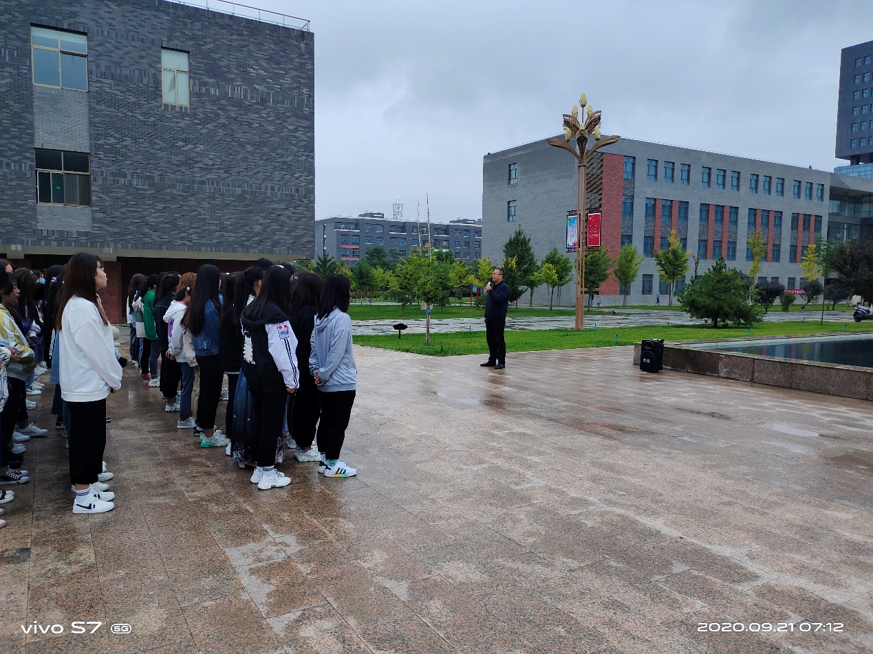 最后,魏潤明以“秋冬季節(jié),加強(qiáng)疫情防護(hù)”為題做了講話。他要求全體師生:一、嚴(yán)格日常管理。提醒學(xué)生早起以增強(qiáng)身體素質(zhì)、健康體魄,要重視自身健康素養(yǎng)和自我防護(hù)能力。二、嚴(yán)格執(zhí)行請銷假制度。各班主任對請假學(xué)生,須認(rèn)真核實(shí)情況,各班同學(xué)應(yīng)嚴(yán)格執(zhí)行請銷假制度。同時,他告誡2018級學(xué)生,抓住有利時機(jī),提前做好“專升本”復(fù)習(xí)工作,為圓滿完成2021屆畢業(yè)生就業(yè)工作,做好準(zhǔn)備。