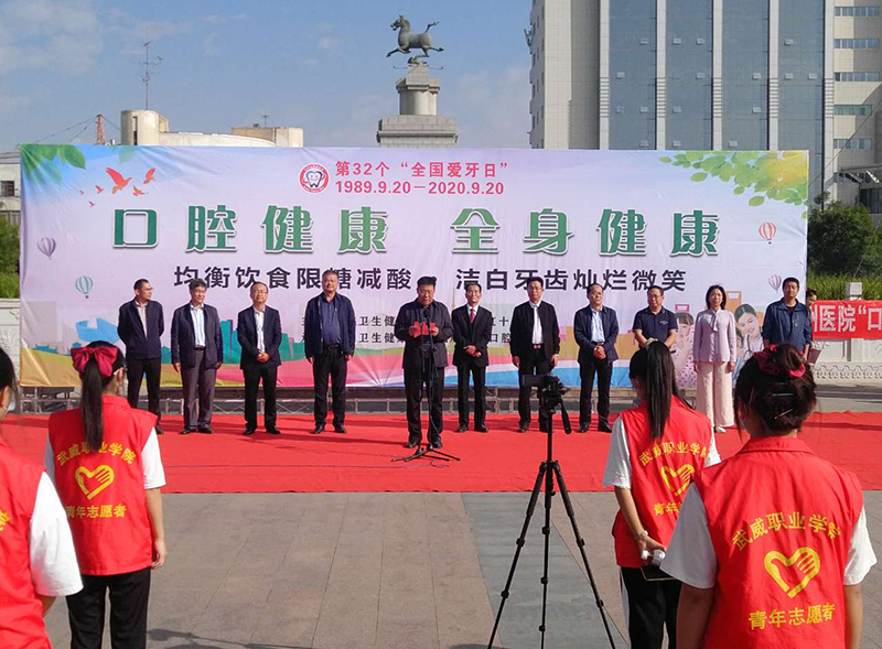 2020年9月20日是第32個(gè)“全國愛牙日”,為進(jìn)一步普及口腔健康知識,結(jié)合今年全國愛牙日“口腔健康,全身健康”的主題,9月20日上午,由武威市衛(wèi)生健康委員會(huì)、武威市紅十字協(xié)會(huì)牽頭在文化廣場組織開展了“9.20全國愛牙日”主題宣傳活動(dòng)。學(xué)院黨委委員、副院長王守云、醫(yī)學(xué)技術(shù)學(xué)院黨總支書記黃文源及醫(yī)學(xué)技術(shù)學(xué)院100多名口腔醫(yī)學(xué)技術(shù)專業(yè)學(xué)生參加了志愿服務(wù)活動(dòng)。