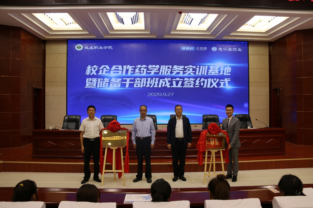 2020年9月27日上午,學(xué)院與老百姓集團(tuán)﹒蘭州惠仁堂藥業(yè)連鎖有限責(zé)任公司“校企共建藥學(xué)實(shí)訓(xùn)基地”暨“老百姓儲備干部班”成立簽約儀式在大學(xué)生活動(dòng)中心菁英廳舉行。儀式由藥學(xué)系主任魏潤明主持,學(xué)院黨委副書記翟存祥、老百姓集團(tuán)總部和蘭州惠仁堂藥業(yè)公司相關(guān)領(lǐng)導(dǎo)出席,藥學(xué)系教師代表和2019級藥學(xué)、中藥學(xué)專業(yè)學(xué)生代表共計(jì)220人參加了簽約儀式。