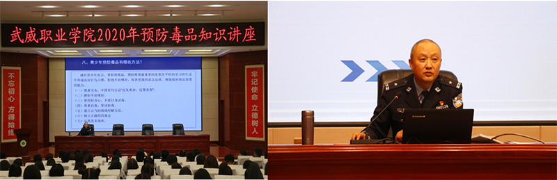 為進(jìn)一步加強(qiáng)學(xué)院毒品預(yù)防教育工作,不斷提高學(xué)生識毒、防毒、拒毒意識,2020年11月6日下午,學(xué)院團(tuán)委邀請武威市公安局禁毒支隊政委、市禁毒辦副主任杜興林在菁英廳作了題為“健康人生 綠色無毒”預(yù)防毒品專題知識講座,師生代表共200余人聆聽講座。