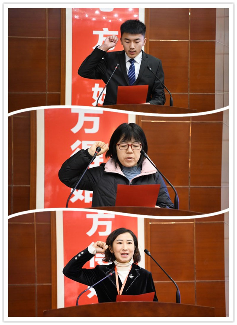 參賽學(xué)生代表吳德磊同學(xué),參賽教師代表張玉梅,裁判員代表趙曉麗分別在開幕式上宣誓,要遵守比賽規(guī)則,嚴(yán)格標(biāo)準(zhǔn)、公正評分,確保比賽安全順利進(jìn)行。