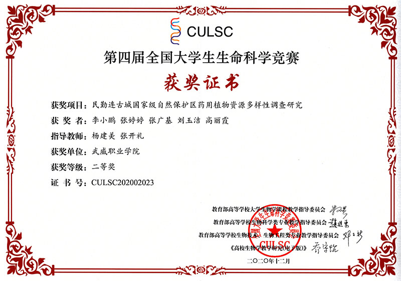 近日,第四屆全國大學生生命科學競賽落下帷幕,經過激烈角逐,我院推薦參賽的兩個項目獲得全國二等獎和三等獎,學院成為省內獲得此次全國比賽獎項的唯一高職院校。在此前舉辦的甘肅賽區(qū)比賽中,我院兩個項目獲得甘肅省一等獎1項,二等獎1項,被推薦參加全國總決賽。此次獲得全國競賽獲獎不僅填補了我院學生在全國競賽中獲獎的空白,也為學院創(chuàng)建“雙高”院校增添了重要成果。