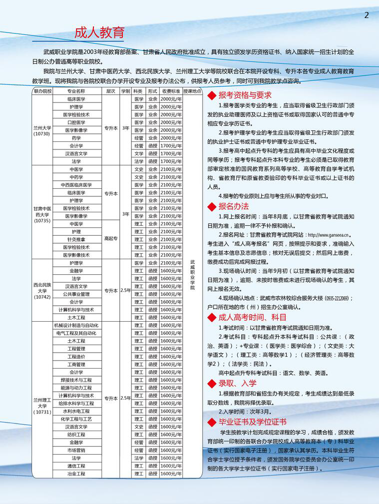 武威職業(yè)學(xué)院繼續(xù)教育學(xué)院2020年招生簡章