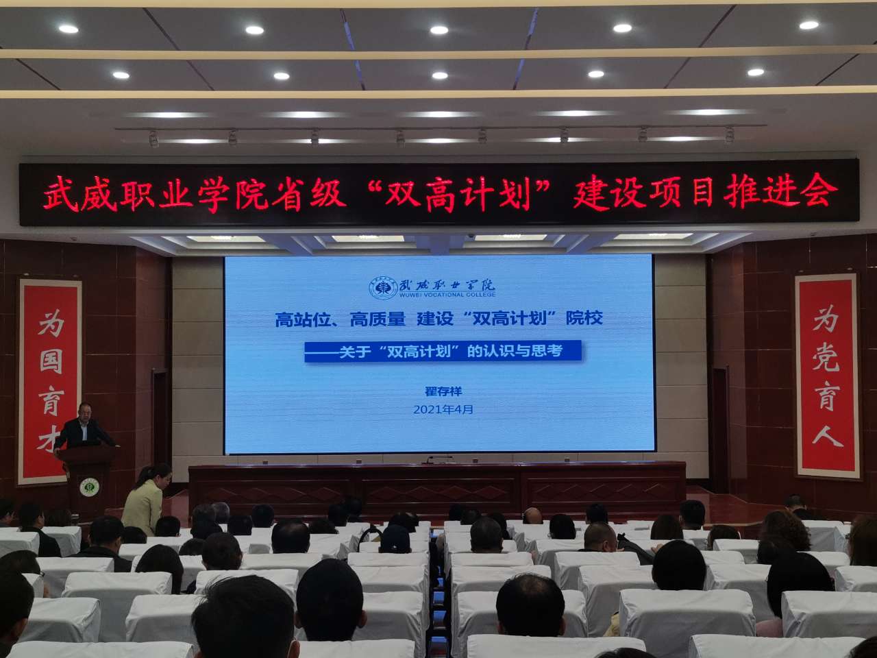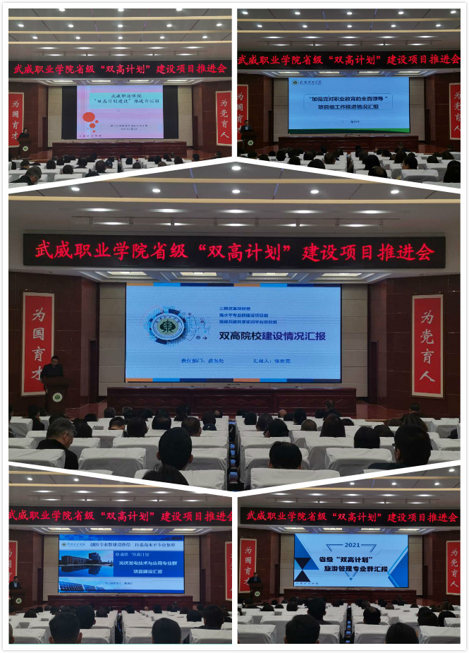 黨委書記、院長趙明在講話中指出,習近平總書記的重要指示和李克強總理的批示,為我們奮力構建高質量職業(yè)教育體系指明了方向。學院成功入選省級“雙高計劃”建設單位,是學院發(fā)展歷程上的又一里程碑,為學院高質量發(fā)展注入了新動能,帶來了新機遇。我們既為前期工作成效感到欣喜,也要認清當前形勢和未來發(fā)展的壓力與緊迫感,抓住這次契機,提升自身硬實力和軟實力。在未來幾年,把“雙高計劃”建設作為學院的中心工作和改革發(fā)展的政治任務。他提出五點工作要求,一是要充分發(fā)揮黨組織的戰(zhàn)斗堡壘作用。以習近平新時代中國特色社會主義思想為指導,加強黨對“雙高計劃”建設項目的全面領導,以一流黨建引領高水平建設,切實把黨建工作與項目建設同部署、同落實、同考評。二是要加強領導,強化責任?!半p高計劃”的建設不能寫在紙上,講在嘴上,而要落實在行動上,所有領導干部要提高擔當意識、服務意識、發(fā)展意識,立足當前,著眼長遠,攻難克堅,為學?!半p高”建設做貢獻。三是要加強融合,提升工作效能。將“雙高計劃”建設與提質培優(yōu)、技能甘肅等重點工作融入日常,同步謀劃、一體推進,確保項目建設有序進行。對標國家高水平院校和高水平專業(yè)群進行高標準謀劃,完善高水平成果培育機制,主動提標、自我加壓,持續(xù)發(fā)力、持續(xù)攻堅,形成更多更好的成果。四是要改革創(chuàng)新,加強績效管理。進一步加強制度建設,持續(xù)創(chuàng)新管理體系、完善管理制度、創(chuàng)新管理辦法,規(guī)范辦事流程,完善績效考核辦法,切實增強績效考核的導向性、方向性、引領性,激發(fā)廣大教職員工參與“雙高計劃”建設的積極性、主動性。五是健全督導機制,加強監(jiān)管。通過開展定期或不定期、形式多樣的督查工作,切實加強管理,推動任務落實。