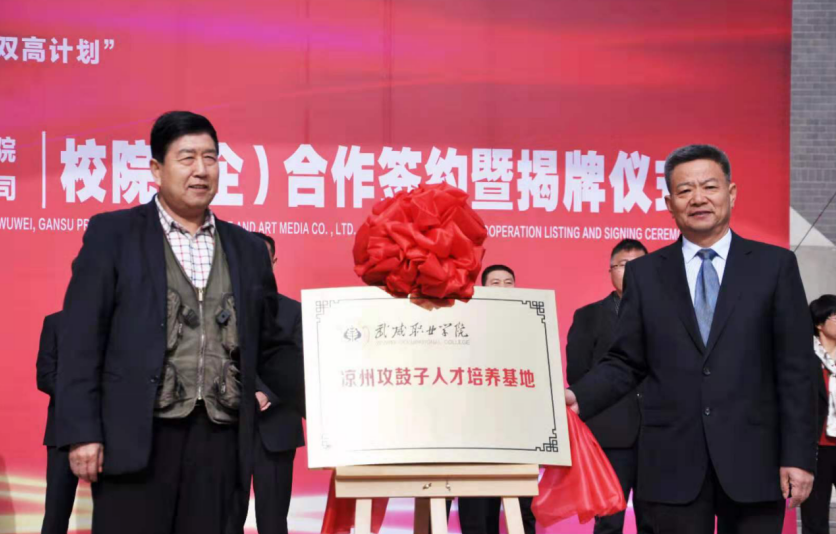 4月27日,學(xué)院與武威市涼州文化研究院、甘肅武威攻鼓子文化藝術(shù)傳媒有限公司“校(院)企戰(zhàn)略合作”簽約暨揭牌儀式在學(xué)院圖書館前廣場舉行。