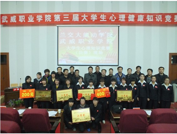 此次比賽歷時一個月,分為初賽和決賽兩部分。全院13個系和蘭交大能動學院代表隊參加了初賽的角逐,最終蘭交大能動學院、電子信息工程系、護理系、藥學系、外語系、農(nóng)經(jīng)系六支代表隊進入決賽。競賽分必答題、搶答題、風險題、觀眾互動四個環(huán)節(jié),內(nèi)容涉及心理理論知識、心理保健常識、心理科普知識等,融趣味性、教育性、普及性于一體。在比賽開始之前,各參賽隊一一向大家作了別出心裁的介紹,并喊出自己隊的參賽口號。比賽中,臺上選手們“八仙過海,各顯其能”,展現(xiàn)了他們雄厚的實力,隊員踴躍發(fā)言,積極搶答,臺下親友團搖旗吶喊,為選手加油,高潮迭起。現(xiàn)場始終洋溢著緊張、熱烈、和諧的氣氛。最終,護理系代表隊以他們精彩出色的表現(xiàn)奪得一等獎,能動學院代表隊、外語系代表隊獲得二等獎,藥學系、電信系、農(nóng)經(jīng)系代表隊獲得三等獎。