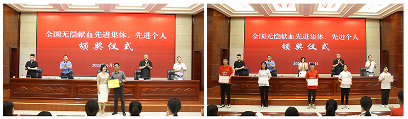 儀式上,與會(huì)領(lǐng)導(dǎo)為武威市2018-2019年度全國(guó)無(wú)償獻(xiàn)血先進(jìn)集體和個(gè)人獲得者頒獎(jiǎng)。我院被評(píng)為全國(guó)無(wú)償獻(xiàn)血促進(jìn)獎(jiǎng)單位獎(jiǎng),有13名師生榮獲全國(guó)無(wú)償獻(xiàn)血志愿服務(wù)獎(jiǎng)。
