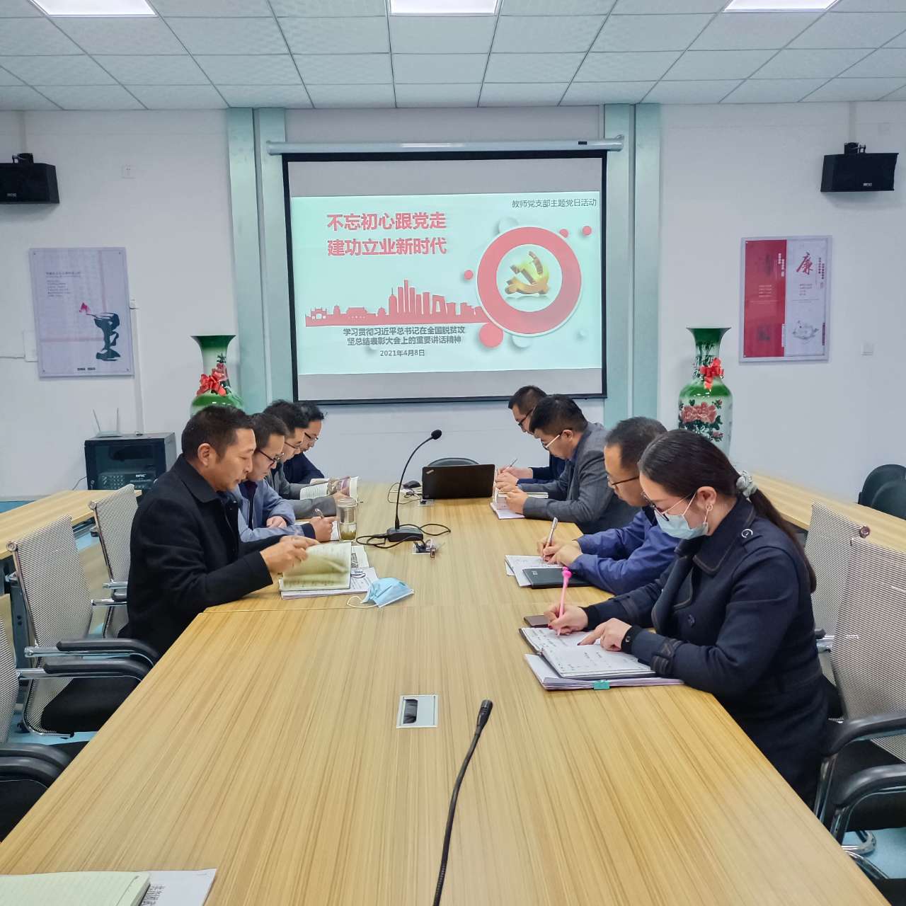4月8日,電子信息工程系組織學(xué)習(xí)習(xí)近平總書(shū)記在全國(guó)脫貧攻堅(jiān)表彰大會(huì)上的講話精神,全體教師黨員參加學(xué)習(xí),電子信息工程系黨總支書(shū)記袁青年主持學(xué)習(xí)。