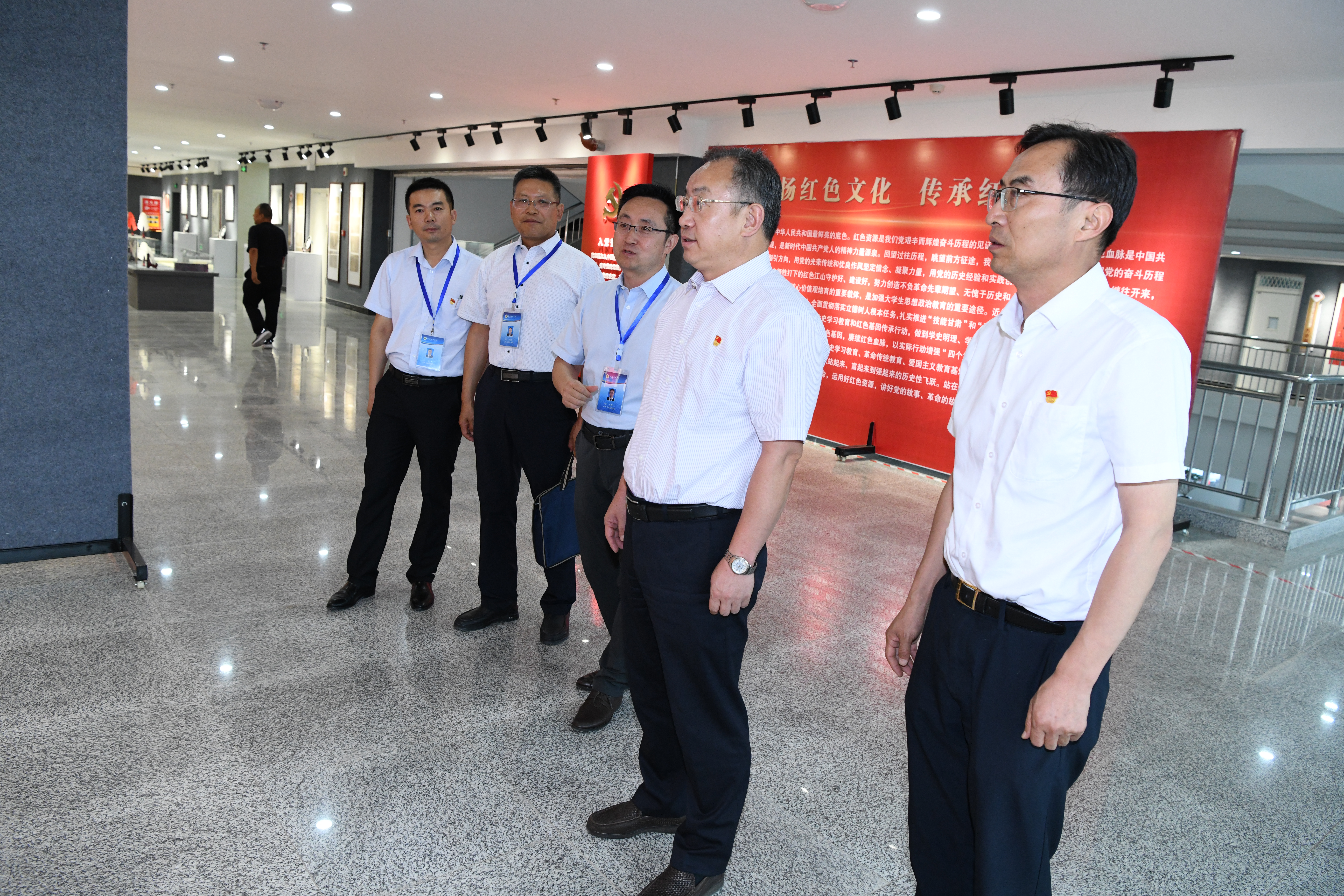 會(huì)后,張新平一行在學(xué)院領(lǐng)導(dǎo)的陪同下參觀了學(xué)院紅色文化藝術(shù)館,組織人事處處長(zhǎng)任陶同志做講解。