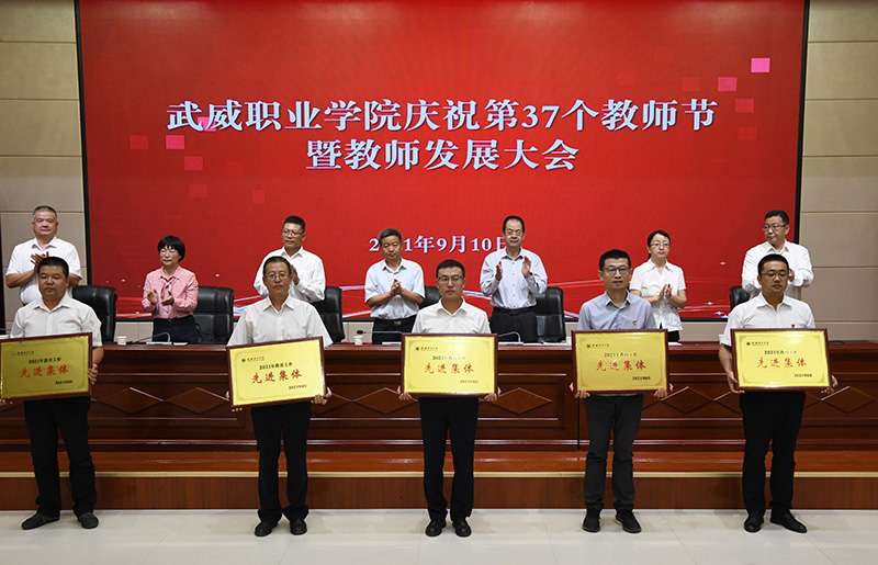 王永緒宣讀了省人社廳、省教育廳《關于表彰2021年甘肅省“園丁獎”先進集體和先進個人的決定》;田迎春宣讀了武威市委、市政府《關于表彰獎勵 2021 年全市教育工作先進集體和先進個人的決定》;何毅宣讀了《武威職業(yè)學院關于表揚2021年教育工作先進集體和先進個人的決定》;陳曉煜宣讀了《武威職業(yè)學院關于評定(聘任)教學名師、教學能手、教學新秀、專業(yè)(學科)帶頭人的決定》,并向先進集體和個人頒發(fā)了獎牌和證書。