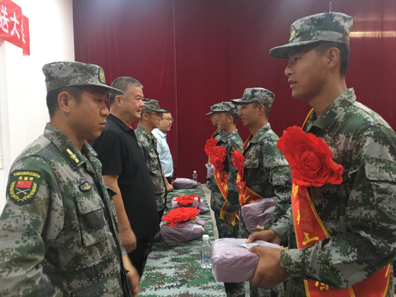 王守云詢問(wèn)了同學(xué)們的近期訓(xùn)練、生活情況,為同學(xué)們送上了中秋節(jié)慰問(wèn)品,并代表學(xué)院向應(yīng)征入伍的同學(xué)表示祝賀。
