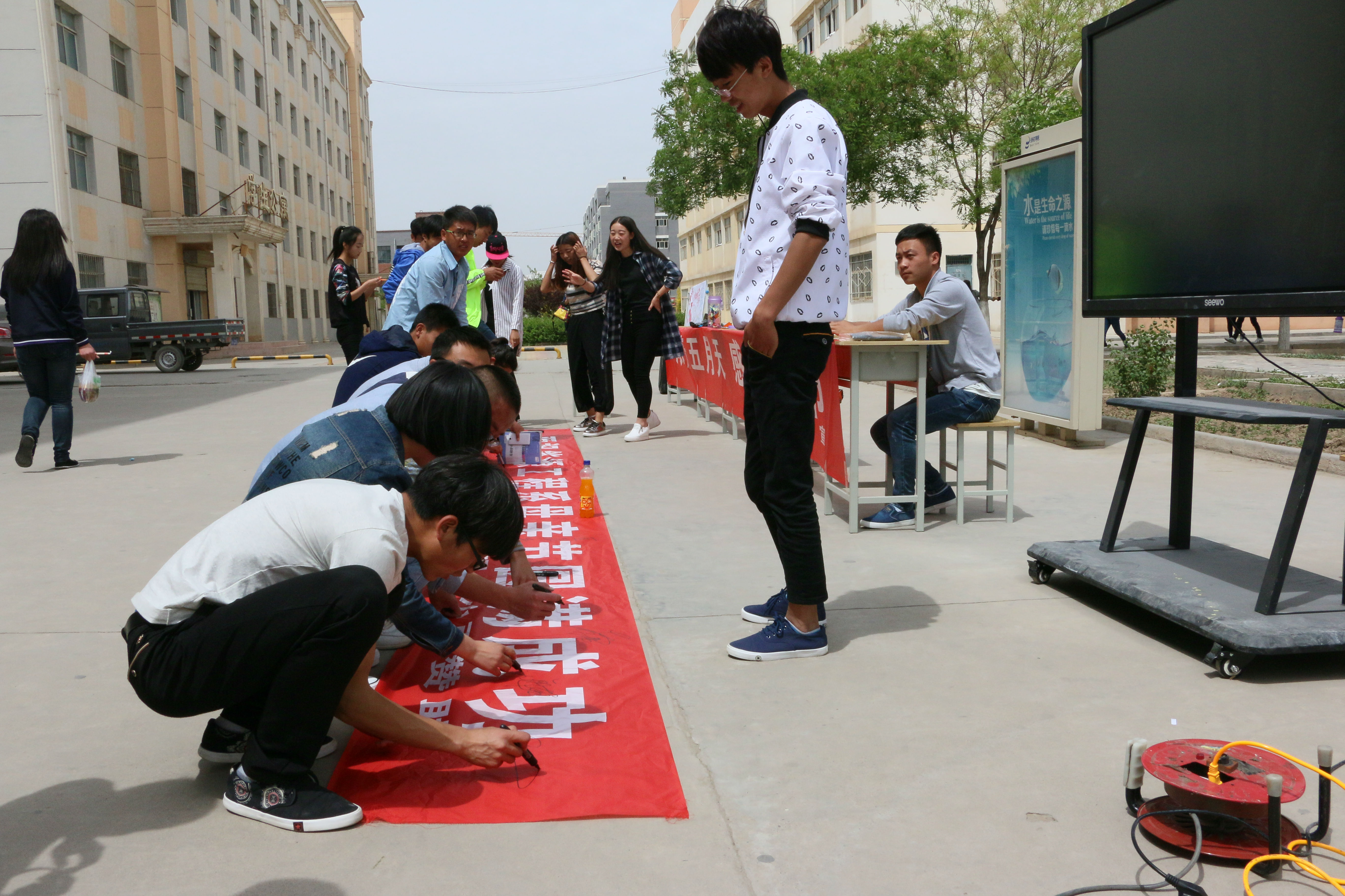 今天早晨十一點(diǎn)左右,能源系全體學(xué)生會(huì)成員以為這次的活動(dòng)準(zhǔn)備好了一切,有母親節(jié)的海報(bào)、母親節(jié)許愿瓶、對(duì)媽媽想說的話的展板、以及自己對(duì)媽媽祝福的簽名