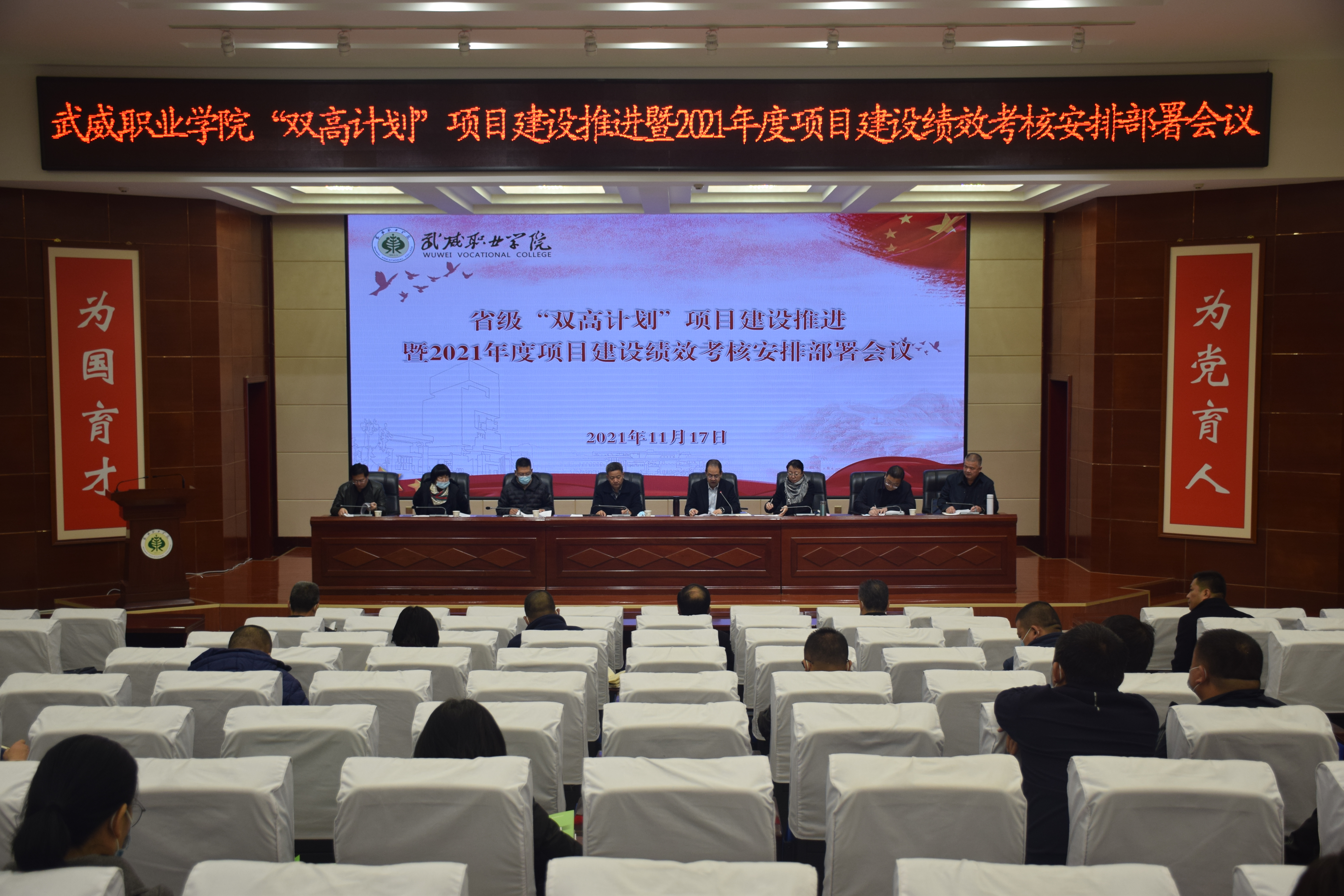 11月17日上午,“雙高計劃”項目建設暨2021年度項目建設績效考核安排部署會議在菁英廳召開。