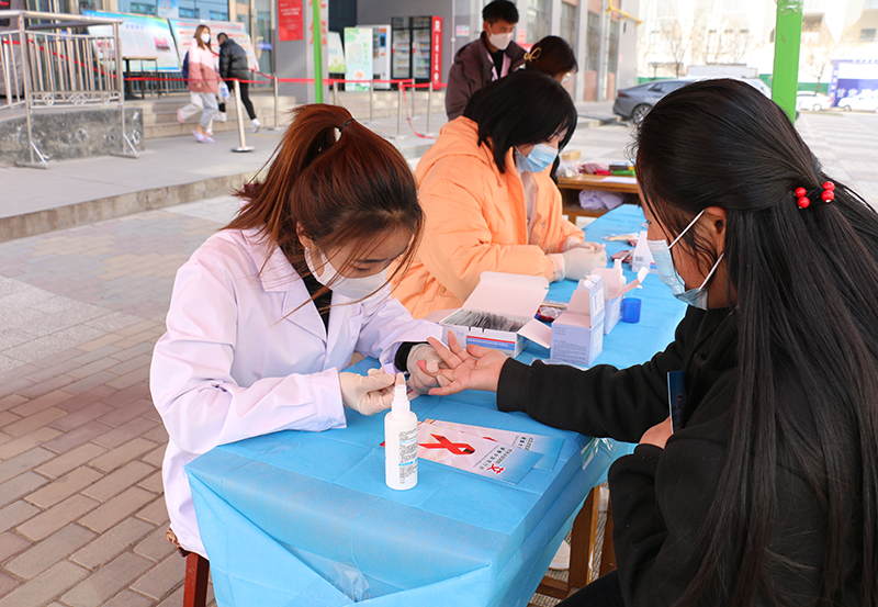 12月1日,學(xué)院護(hù)理系紅絲帶協(xié)會聯(lián)合涼州區(qū)衛(wèi)生健康局、涼州區(qū)疾控中心,在二號食堂門口及荷花池開展了“世界艾滋病日”青年學(xué)生咨詢檢測活動(dòng),活動(dòng)中對260余名學(xué)生進(jìn)行了免費(fèi)艾滋病檢測,并予以獎(jiǎng)品鼓勵(lì),組織了防艾知識宣傳志愿隊(duì)伍現(xiàn)場發(fā)放宣傳手冊,制作并贈(zèng)送紅絲帶標(biāo)志400余個(gè)。