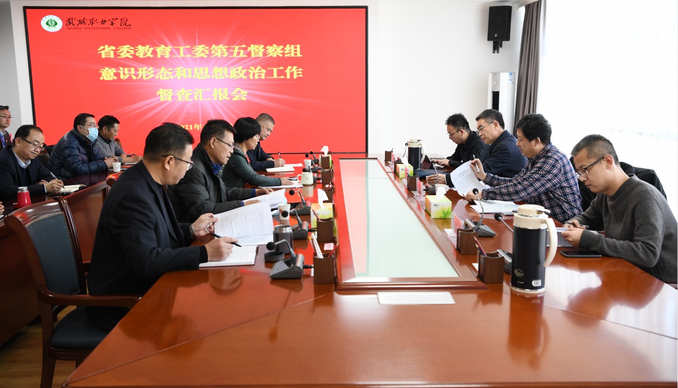 12月9日下午,由蘭州城市學(xué)院黨委委員、宣傳部部長,副校長、檢查組組長李慕堂,甘肅農(nóng)業(yè)職業(yè)技術(shù)學(xué)院宣傳部部長、馬克思主義學(xué)院院長張勝聞、蘭州信息科技學(xué)院黨委宣傳部部長焦磊、蘭州城市學(xué)院黨委宣傳部宋福組成的省委教育工委第五檢查組來我院督查指導(dǎo)學(xué)院思想政治工作開展情況。黨委委員、副院長王永緒、何毅,紀委書記、監(jiān)察專員陳曉煜,黨委委員、副院長王守云陪同檢查。