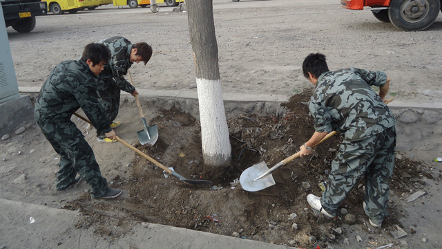年年植樹(shù),人人植樹(shù),公益植樹(shù),熱情的高漲,無(wú)疑是一種社會(huì)的進(jìn)步。在老師的帶領(lǐng)下,同學(xué)們進(jìn)行分組、領(lǐng)取勞動(dòng)工具。到植樹(shù)點(diǎn)后同學(xué)們兩兩組合,在馬路兩側(cè)一字排開(kāi),揮動(dòng)鐵鍬,松土挖坑,干得十分起勁,盡管道路上塵土飛揚(yáng),參加植樹(shù)活動(dòng)的老師同學(xué)卻揮汗實(shí)干,從學(xué)院西門(mén)口到皇臺(tái)酒廠一段的馬路兩側(cè)留下了同學(xué)們勞動(dòng)的身影和歡快的笑語(yǔ)。