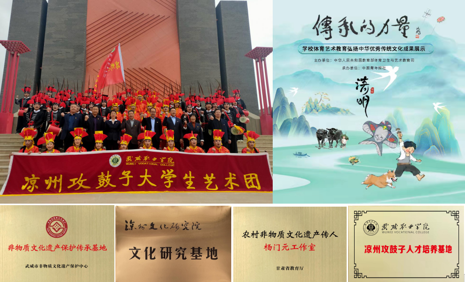 近年來,學(xué)校全力推進(jìn)“雙高計(jì)劃”項(xiàng)目建設(shè),組織成立了武威職業(yè)學(xué)院涼州攻鼓子大學(xué)生藝術(shù)團(tuán),聘請國家級(jí)非遺代表性傳承人楊門元親傳技藝,并開展了系列展演活動(dòng),著力打造特色校園文化品牌,助推文化繁榮、社會(huì)文明的新武威和華夏文明傳承創(chuàng)新區(qū)建設(shè),服務(wù)鄉(xiāng)村振興戰(zhàn)略。