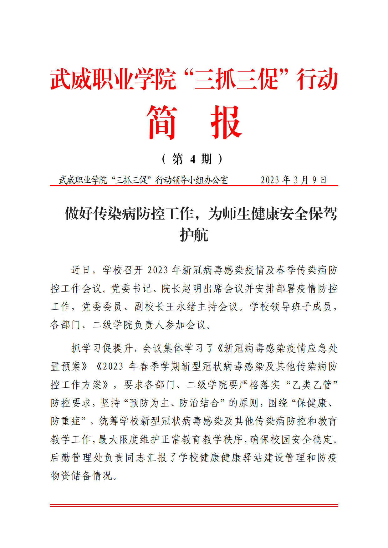 簡報第4期:做好傳染病防控工作,為師生健康安全保駕護(hù)航