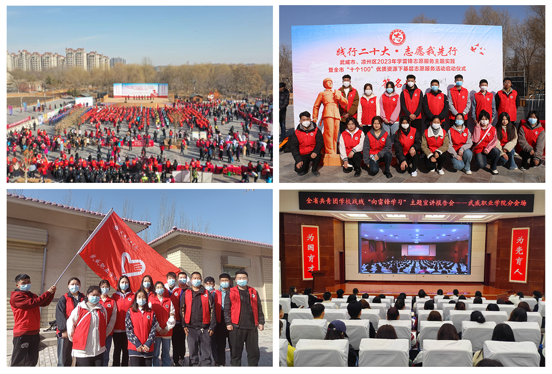 活儀式結(jié)束后,校團(tuán)委根據(jù)上級(jí)組織安排部署,3月5日組織青年志愿者觀看了全省共青團(tuán)學(xué)校戰(zhàn)線“向雷鋒學(xué)習(xí)”主題宣講線上直播報(bào)告會(huì),組隊(duì)參加了武威市、涼州區(qū)2023年“踐行二十大 志愿我先行”學(xué)雷鋒志愿服務(wù)主題實(shí)踐暨全市“十個(gè)100”優(yōu)質(zhì)資源下基層志愿服務(wù)活動(dòng)啟動(dòng)儀式,3月6日組隊(duì)參加了2023年武威市人體器官捐獻(xiàn)緬懷紀(jì)念活動(dòng),為學(xué)校學(xué)雷鋒志愿服務(wù)月活動(dòng)的熱烈開展拉開了序幕,奠定了基礎(chǔ)。