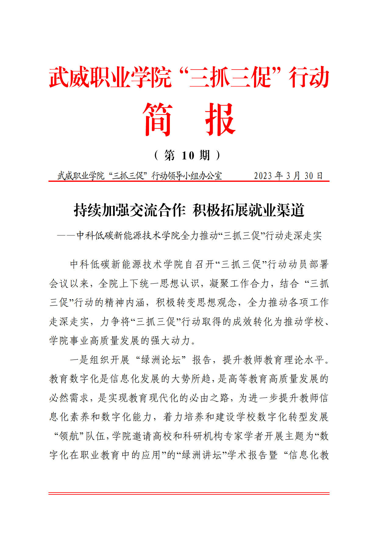 簡報(bào)第10期:持續(xù)加強(qiáng)交流合作 積極拓展就業(yè)渠道