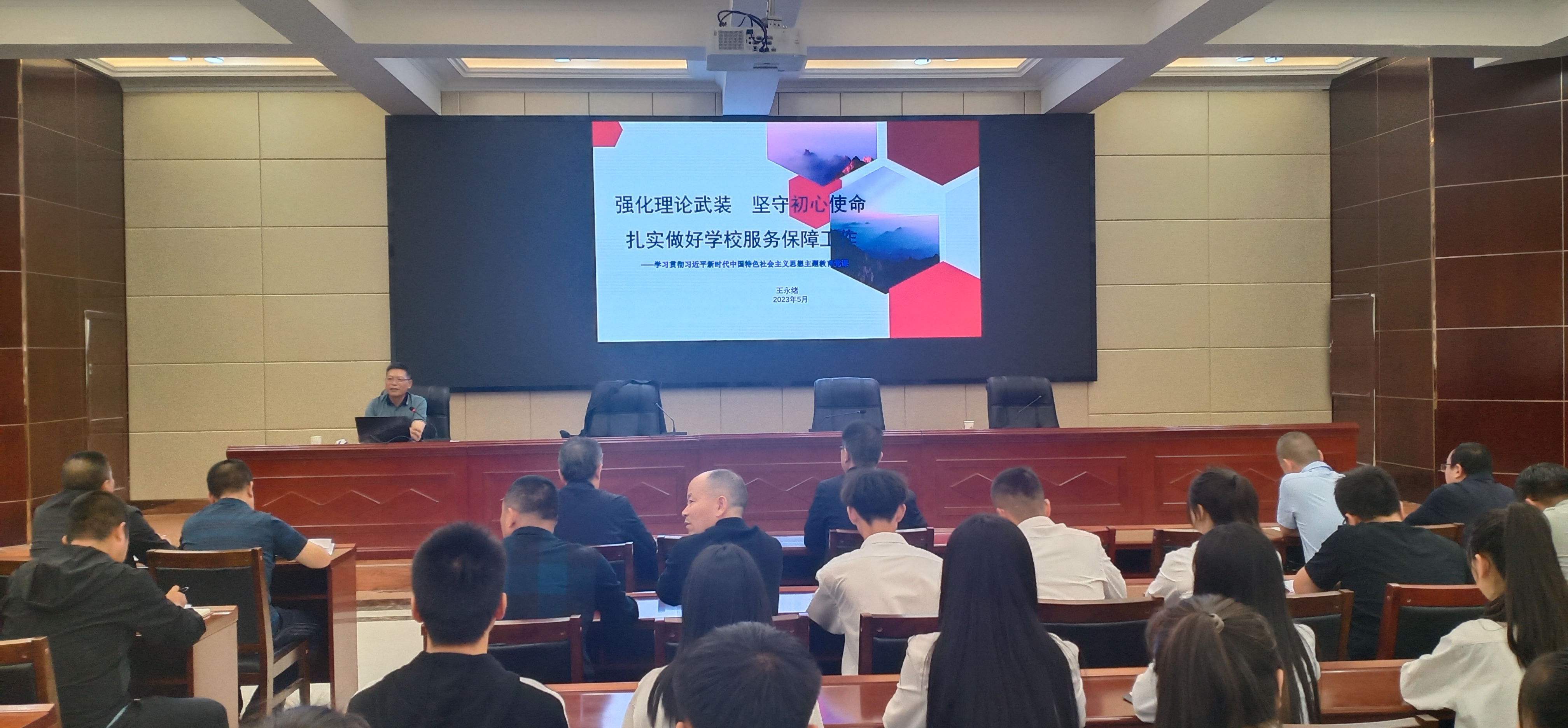 5月30日,學校黨委委員、副校長王永緒以《強化理論武裝?堅守初心使命——扎實做好學校服務保障工作》為題,在學校行樹樓北側(cè)學術(shù)報告廳講授學習貫徹習近平新時代中國特色社會主義思想主題教育專題黨課。信息技術(shù)學院全體師生黨員參加黨課學習。