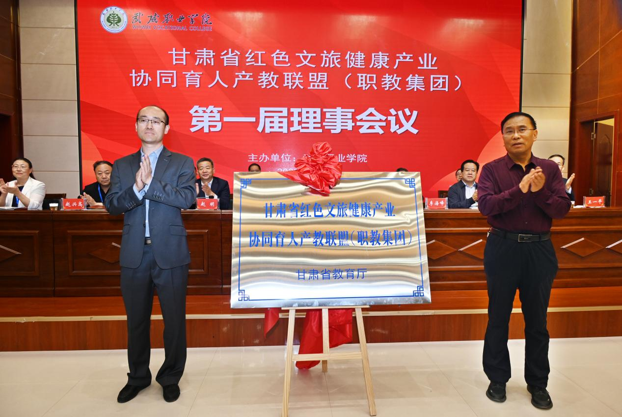 省教育廳職業(yè)教育與成人教育處二級(jí)調(diào)研員胡晶宣讀了《甘肅省紅色文旅健康產(chǎn)業(yè)協(xié)同育人產(chǎn)教聯(lián)盟(職教集團(tuán))的批復(fù)》,并與武威市教育局副局長(zhǎng)李海峰共同為《甘肅省紅色文旅健康產(chǎn)業(yè)協(xié)同育人產(chǎn)教聯(lián)盟(職教集團(tuán))》揭牌。