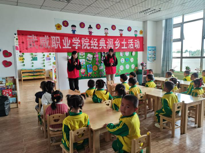 學(xué)校組織推普志愿團(tuán)隊學(xué)生赴古浪綠洲小鎮(zhèn)第一幼兒園開展了經(jīng)典浸潤?quán)l(xiāng)土特色幫扶活動,以經(jīng)典詩文、兒歌、紅歌等語言小游戲和幼兒進(jìn)行了互動,并發(fā)放文具等禮品,激發(fā)了小朋友同講普通話的興趣。
