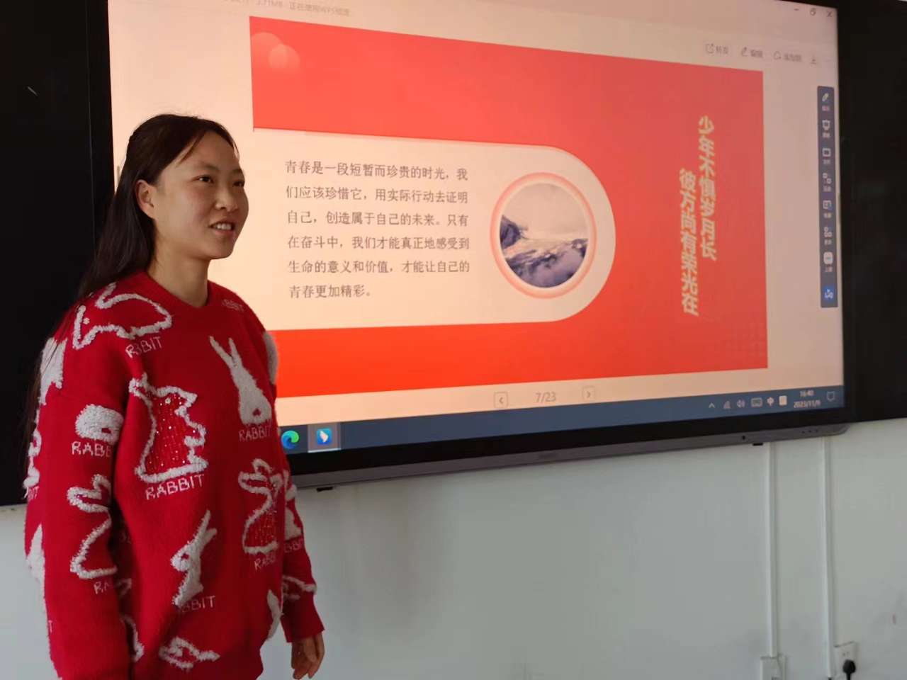 藝術(shù)與教育學(xué)院2021級學(xué)生后麗婷分享了自己參加“三下鄉(xiāng)”社會(huì)實(shí)踐服務(wù)團(tuán)隊(duì),走進(jìn)基層社區(qū)開展志愿服務(wù)活動(dòng),在基層體悟中不斷增強(qiáng)責(zé)任感和使命感,在社會(huì)課堂中“受教育、長才干、作貢獻(xiàn)”的事跡。她期盼各位學(xué)子做新時(shí)代好青年,如螢火一般,有一分熱便發(fā)一分光,以奮斗來點(diǎn)亮青春最亮麗的底色。