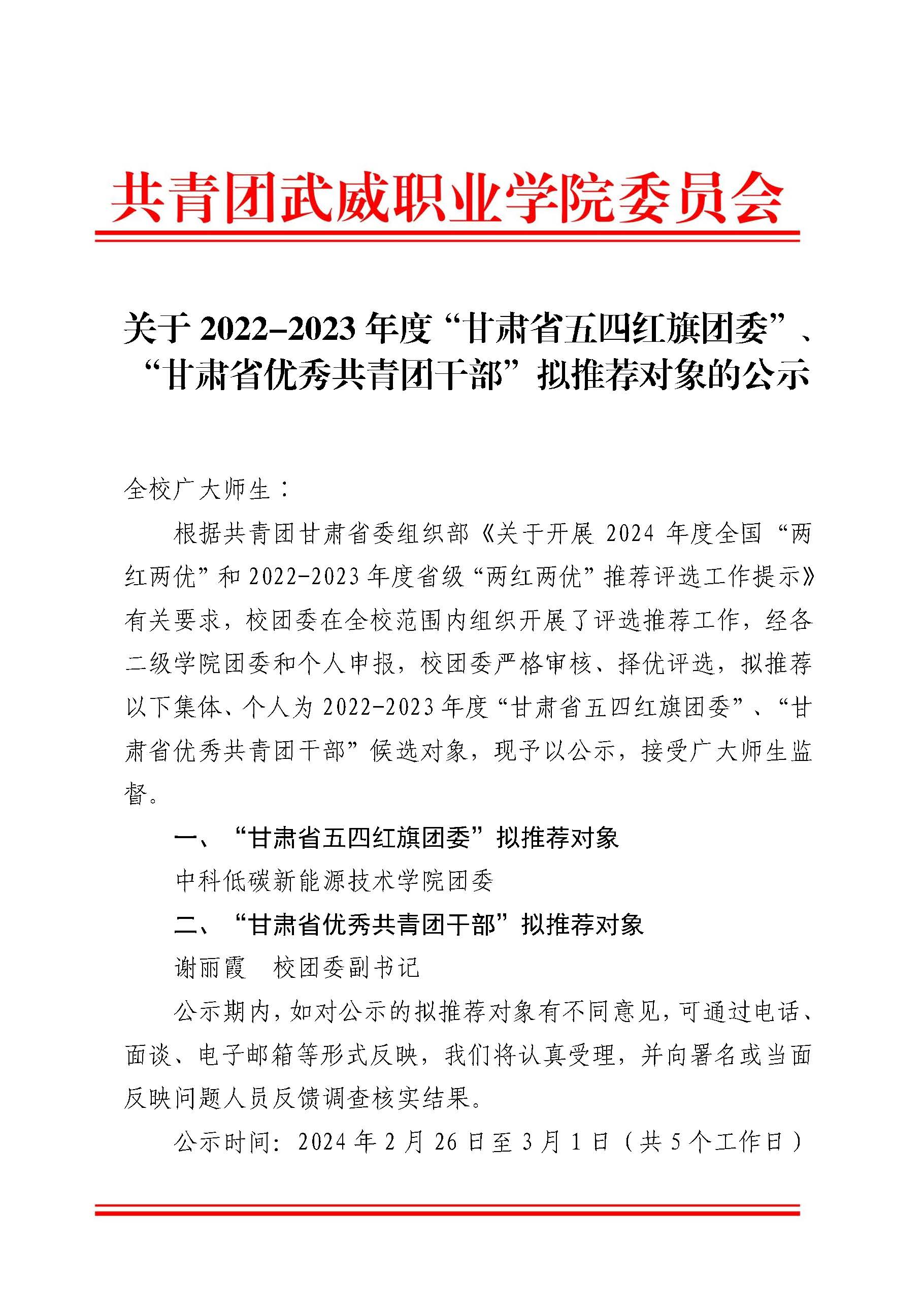 關(guān)于2022-2023年度“甘肅省五四紅旗團委”、“甘肅省優(yōu)秀共青團干部”擬推薦對象的公示