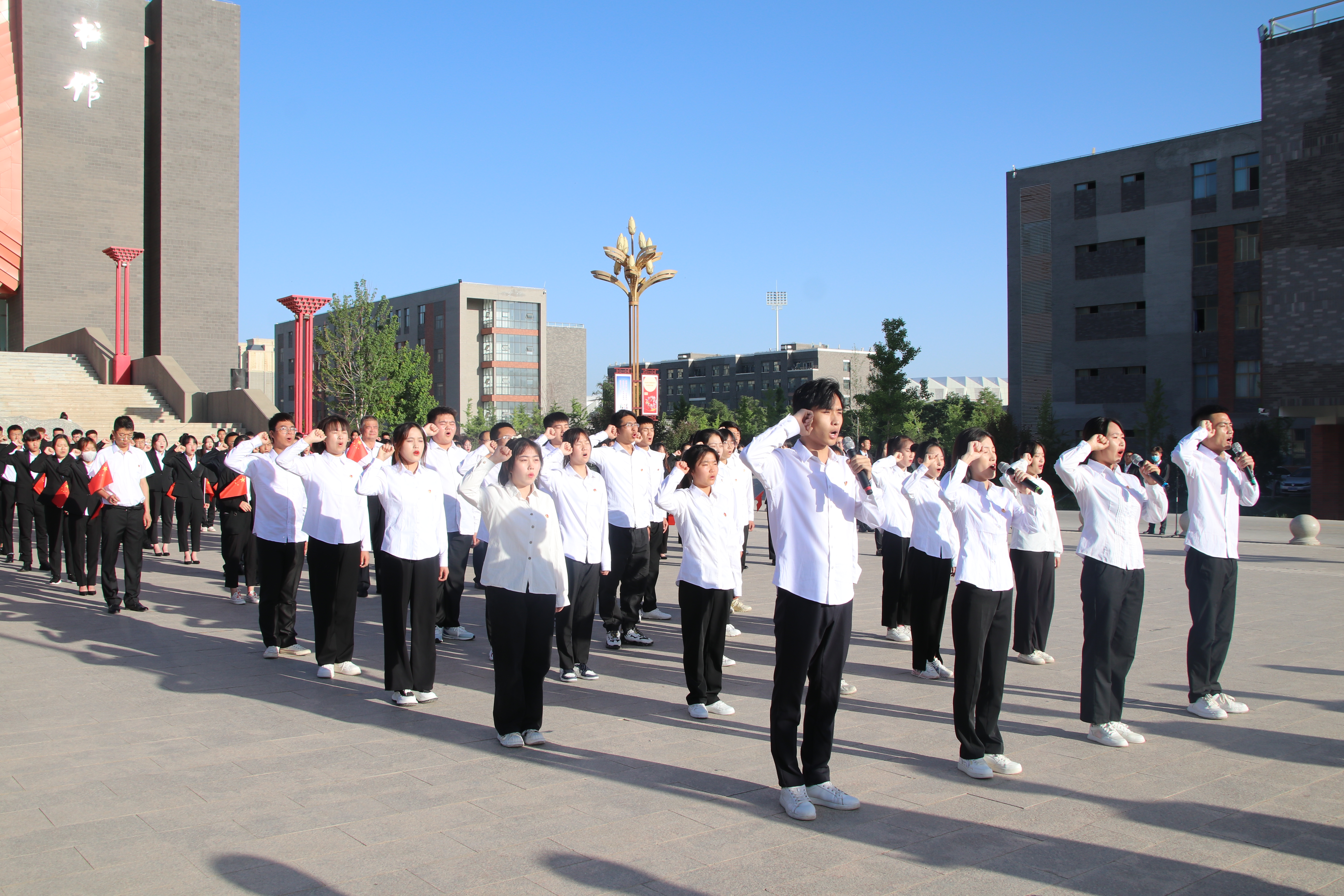 奮斗正當(dāng)時(shí),青春獻(xiàn)給黨!為慶祝中國共產(chǎn)主義青年團(tuán)成立100周年,5月31日早上,校團(tuán)委在圖書館前廣場舉辦“喜迎二十大,永遠(yuǎn)跟黨走,奮進(jìn)新征程”主題團(tuán)日活動(dòng)。學(xué)校黨委委員、副校長王守云出席活動(dòng)并講話,活動(dòng)由校團(tuán)委負(fù)責(zé)人高鵬堂主持。
