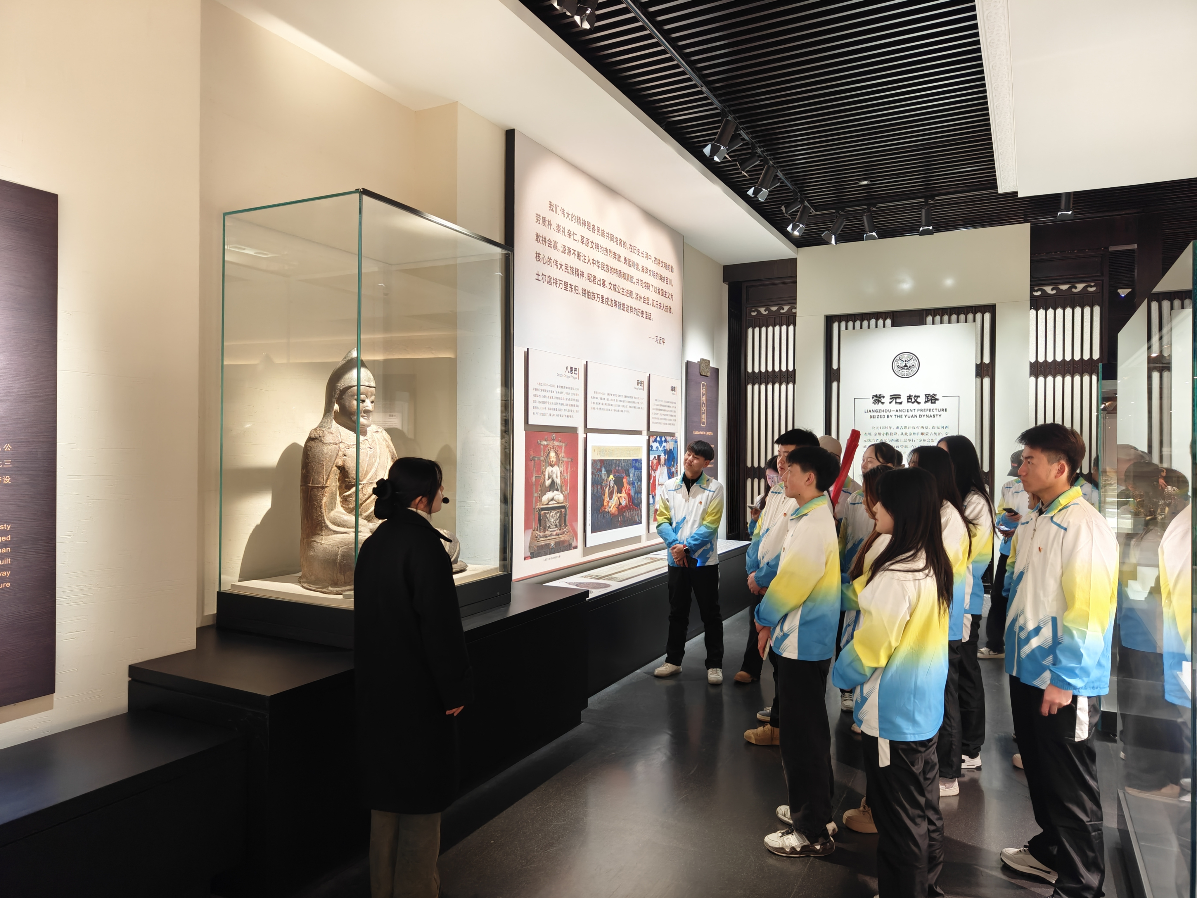 走進(jìn)武威市博物館,學(xué)子們被眼前精美絕倫的文物所震撼。跟隨講解員的步伐,學(xué)子們近距離感受綿延千年的武威歷史長河。