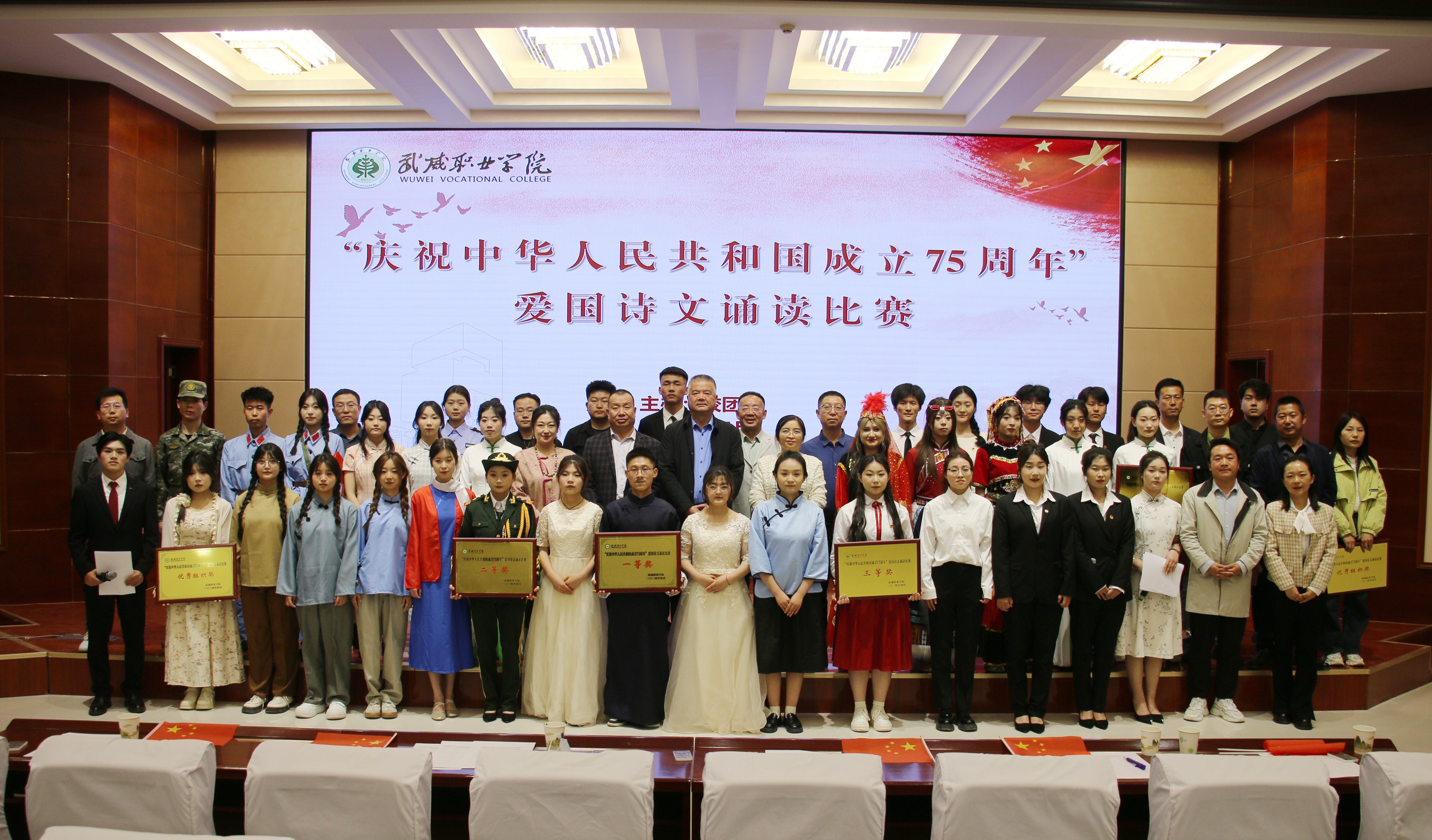 4月25日晚,學(xué)校“紀(jì)念‘五四’運(yùn)動(dòng)105周年暨慶祝新中國(guó)成立75周年”愛國(guó)詩文誦讀比賽在菁英廳舉辦。黨委委員、副校長(zhǎng)王守云出席活動(dòng),各二級(jí)學(xué)院團(tuán)委書記及學(xué)生代表220余人觀看比賽。