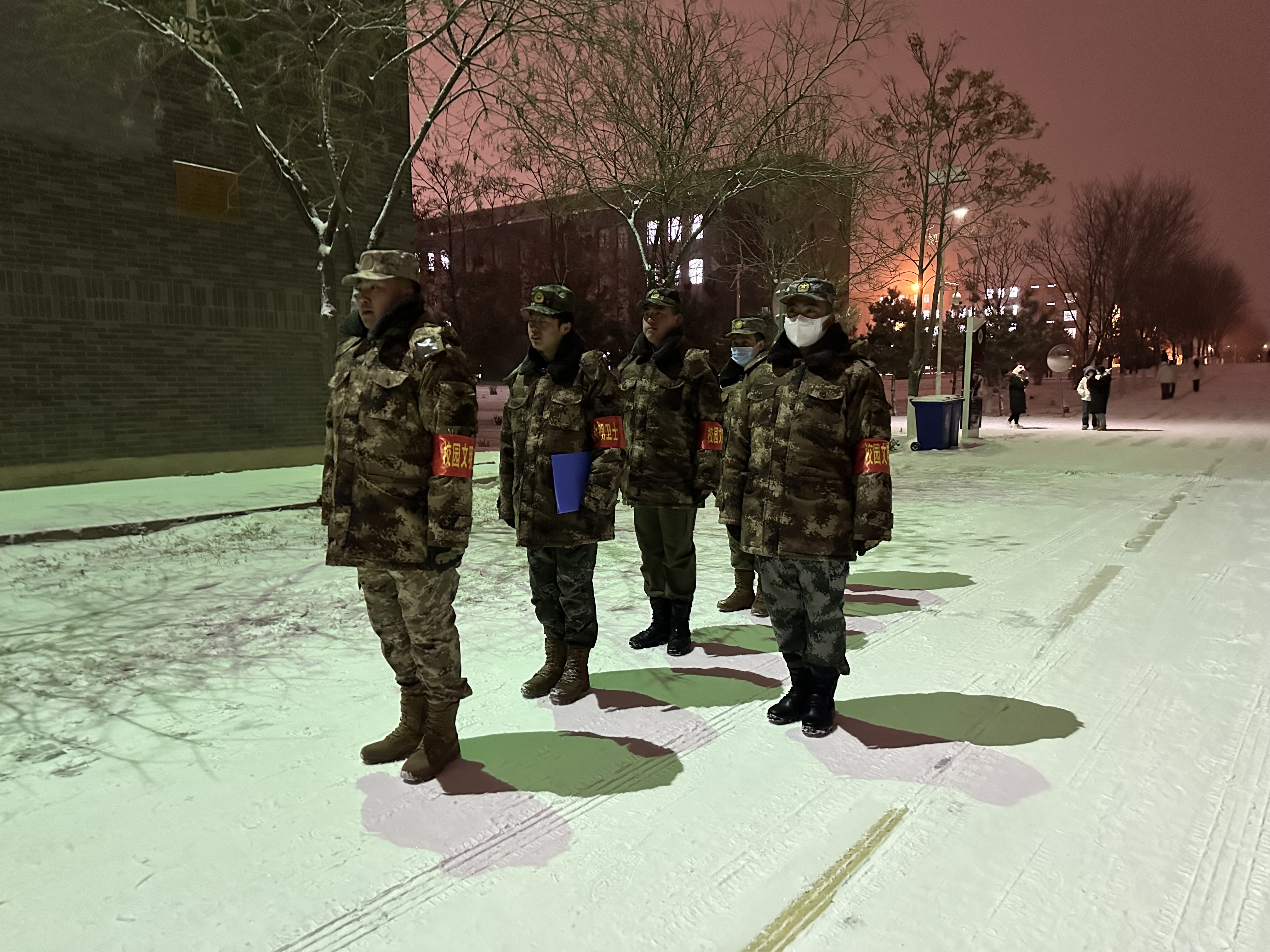 文明校園護(hù)衛(wèi)隊(duì)組建以來,他們克服困難,準(zhǔn)時(shí)準(zhǔn)點(diǎn)在校園里巡邏執(zhí)勤,退役大學(xué)生用挺拔帥氣的軍姿、嚴(yán)以律己的作風(fēng)、有理有據(jù)的話語有效勸阻了學(xué)生的不文明行為,為校園文明建設(shè)做出了貢獻(xiàn)。