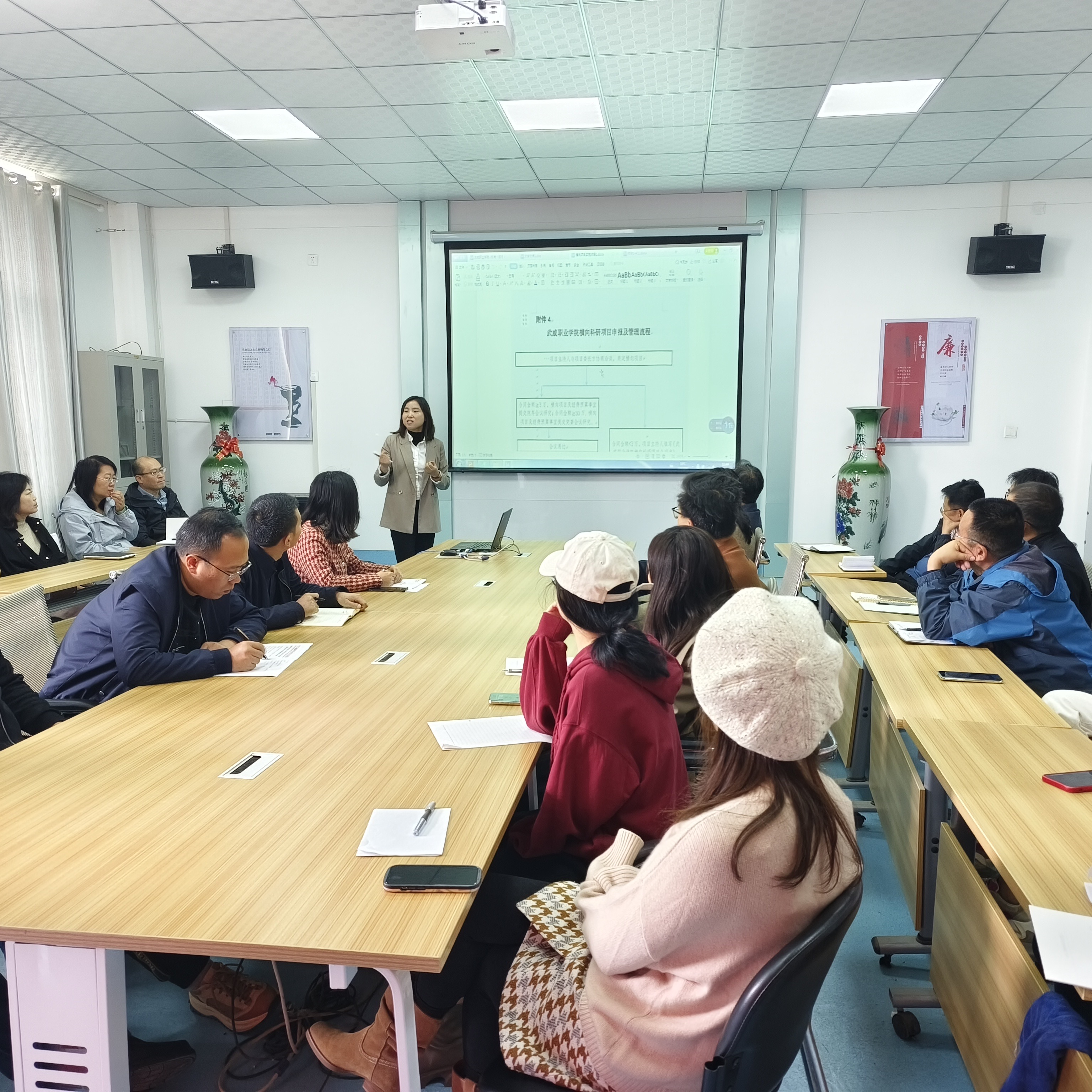 活動(dòng)中,科技處工作人員宣講了橫向技術(shù)服務(wù)工作的實(shí)施流程,包括項(xiàng)目設(shè)置、合同簽訂、經(jīng)費(fèi)報(bào)銷、政策解讀等方面,尤其是對(duì)合同的填寫、任務(wù)書的填寫以及橫向技術(shù)服務(wù)流程的具體實(shí)施,進(jìn)行了詳細(xì)的指導(dǎo)與解答。參訓(xùn)教師針對(duì)相關(guān)培訓(xùn)內(nèi)容進(jìn)行熱烈互動(dòng)及詳細(xì)詢問,科技處工作人員積極解答教師們的疑點(diǎn)難點(diǎn),為教師們提供實(shí)用的指導(dǎo)和建議。