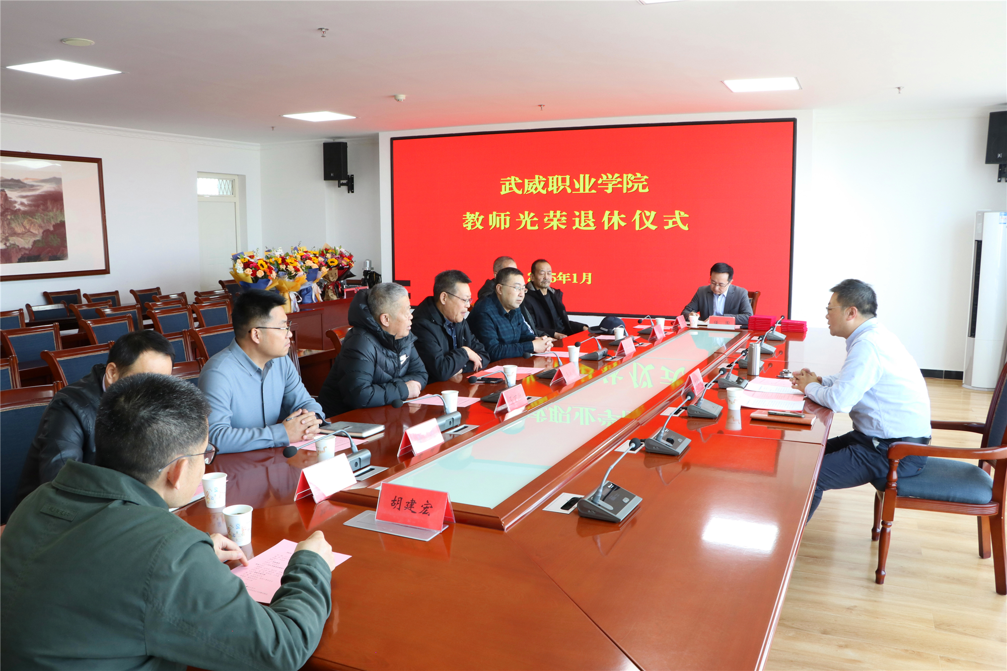 李海軍為退休教師頒發(fā)了退休證書并贈送了鮮花,感謝他們多年來為學校教育事業(yè)做出的貢獻。
