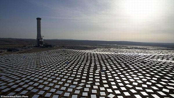 以色列內(nèi)蓋夫沙漠上5萬(wàn)個(gè)日光反射鏡面環(huán)繞一座太陽(yáng)能塔,該太陽(yáng)能塔高度為250米。目前,在以色列晴朗天氣,太陽(yáng)能利用率非常低,未來(lái)這項(xiàng)以色列最大的再生能源項(xiàng)目將具有較好的應(yīng)用前景,預(yù)計(jì)2018年建造完成。