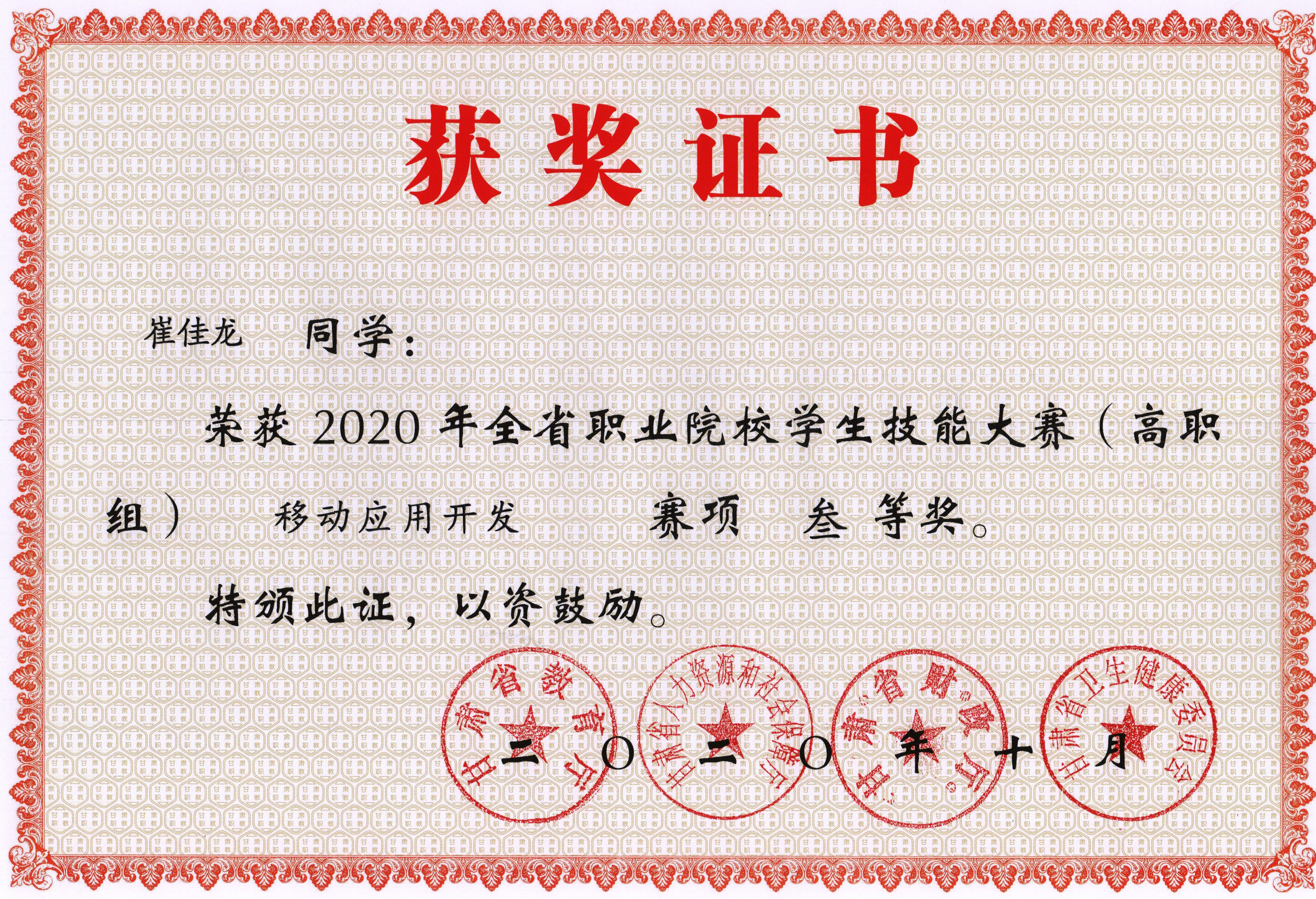 2020年全省職業(yè)院校學(xué)生技能大賽“三等獎”