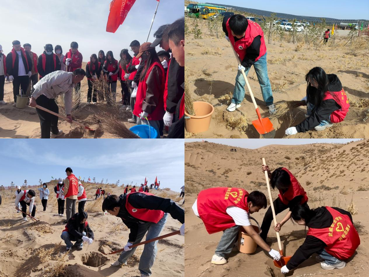 ?4月22日,在第54個世界地球日來臨之際,武威職業(yè)學(xué)院“青馬工程”培訓(xùn)班30名學(xué)員代表前往涼州區(qū)九墩鎮(zhèn)騰格里沙漠邊緣開展壓沙治沙實踐活動。學(xué)員們以“植綠護綠青年行”的實際行動,踐行習(xí)近平生態(tài)文明思想,為筑牢國家西部生態(tài)安全屏障貢獻青春力量。?